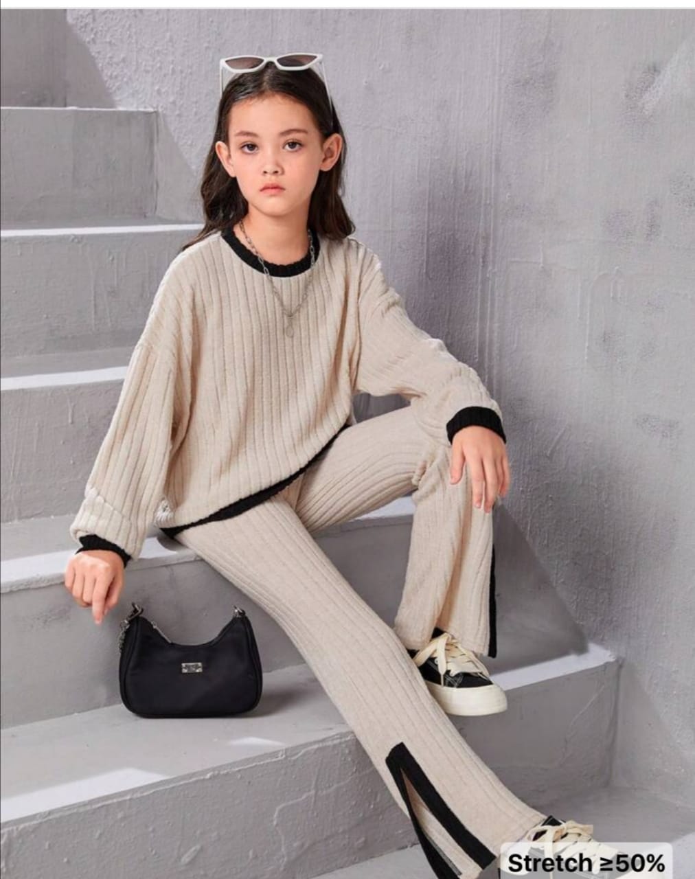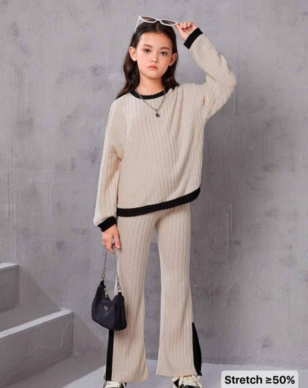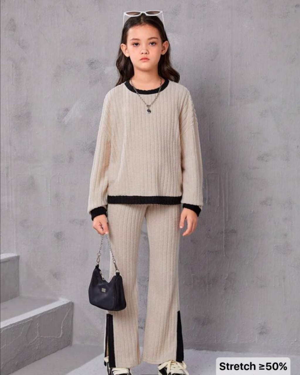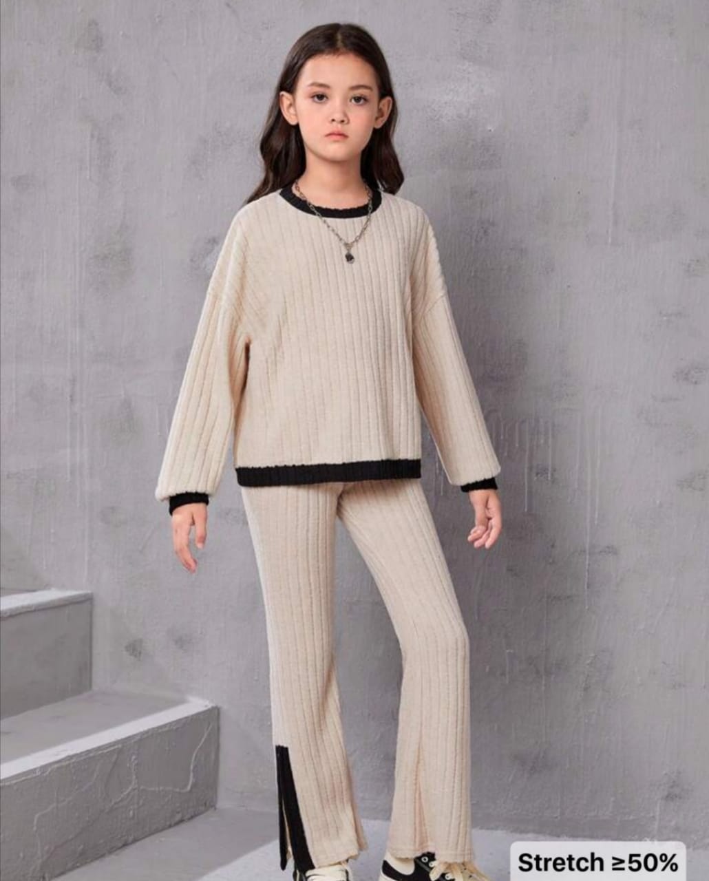 طقم بنطلون واسع وقميص بأكمام طويلة